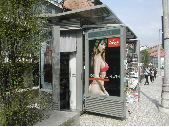 Kiosque à journaux à structure métallique, installée sur un trottoir, à Guimaraes au Portugal.