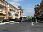 Prise de vue d'une rue d'Union avec bâtiment collectifs en bandes se faisant face à face d'un côté et de l'autre d'une voirie bitumée. Façade des bâtiments bétonnées sauf en fond sur la gauche avec façade en brique. Balcon en bétons avec garde-corps en fer forgé sauf balcons du dernier étage avec garde-corps en partie en brique et sont soutenus par piliers en briques. Au pieds des habitats collectifs, plantes d'ornement et muret en béton avec grillage en fer forgé. Présence de places de stationnement de chaque côté de la rue.