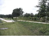 2 prises de vues du parc du ramier à Blagnac, pays toulousain. Photographie prise en plongée avec vaste étendue herbeuse, buisson et arbres d'ornements. Sur la gauche de la première image allée en pierre. En fond sont visibles les bassins du parc. Des allées de gravier sillonent les photos, dont une allée sur une butte à la droite des images. Elle est longée par une haie d'ornement qui la sépare de l'allée longeant le muret.