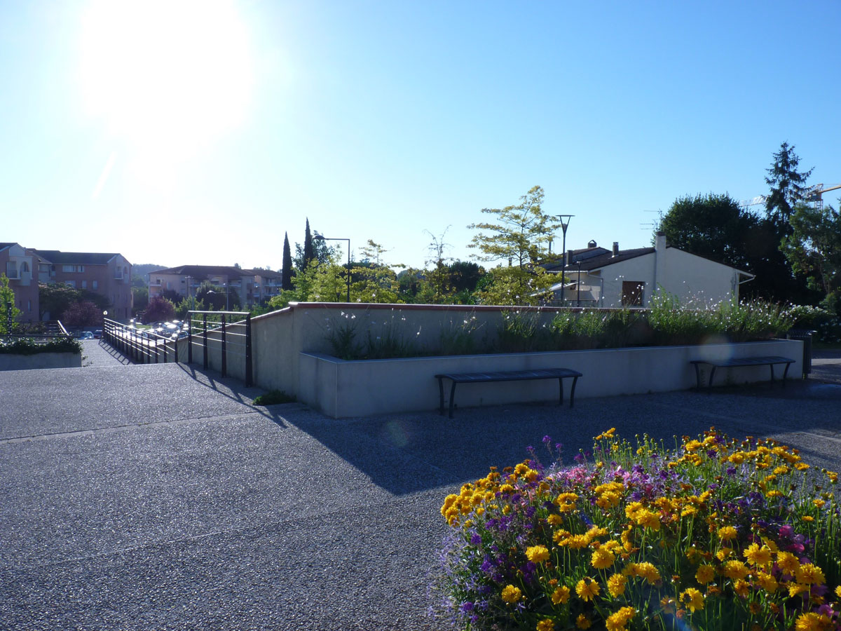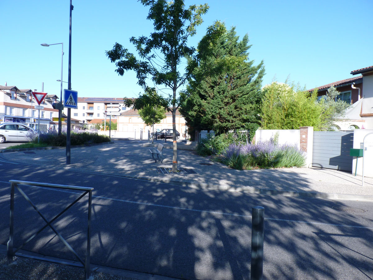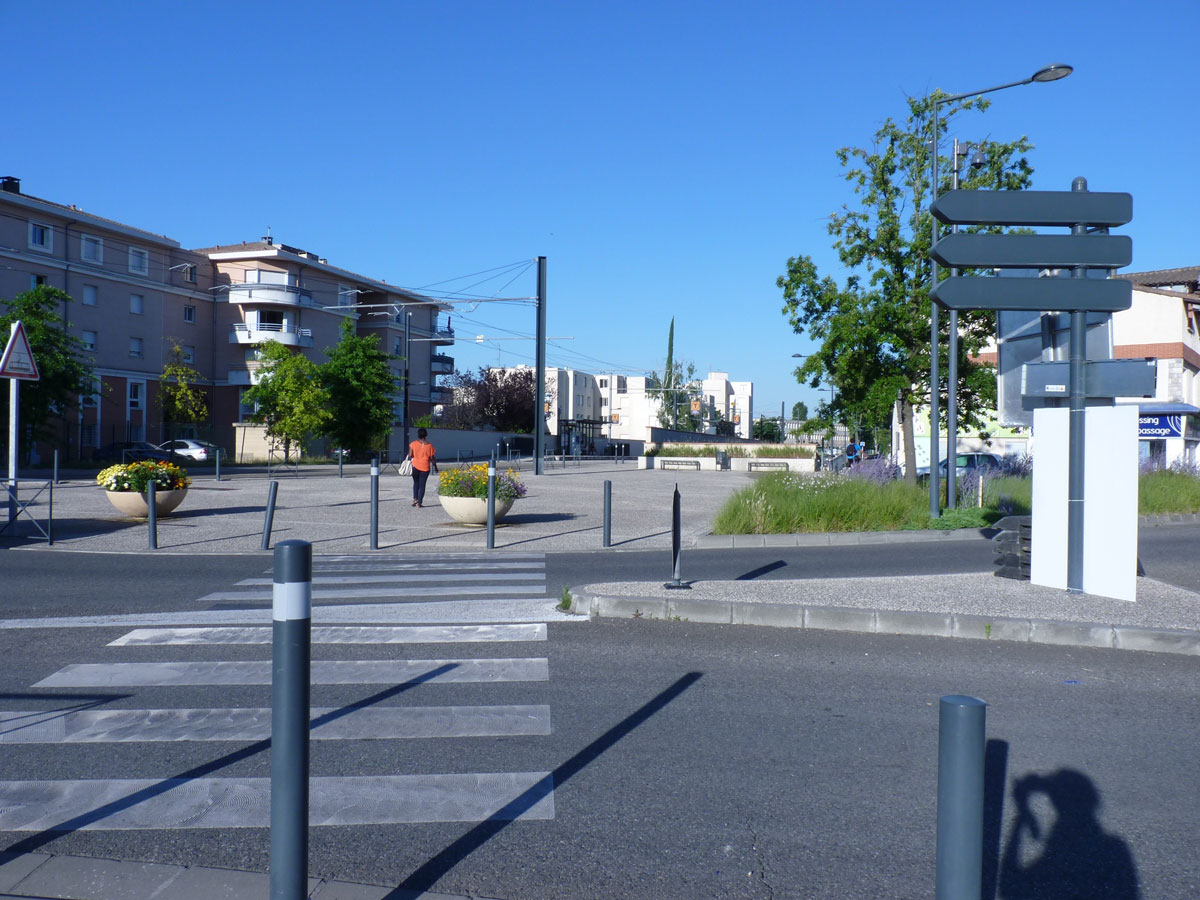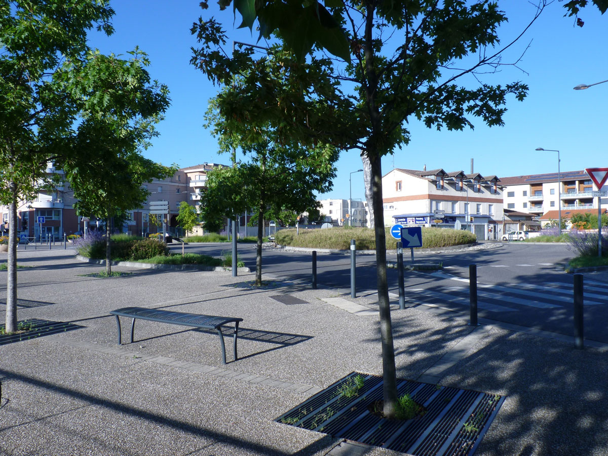 Mot-clef : Blagnac ; place publique ; CARREFOUR ; RAMPE D'ACCÈS ; MOBILIER URBAIN ; FONTAINE ; espace public
