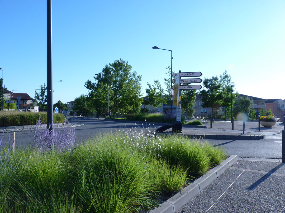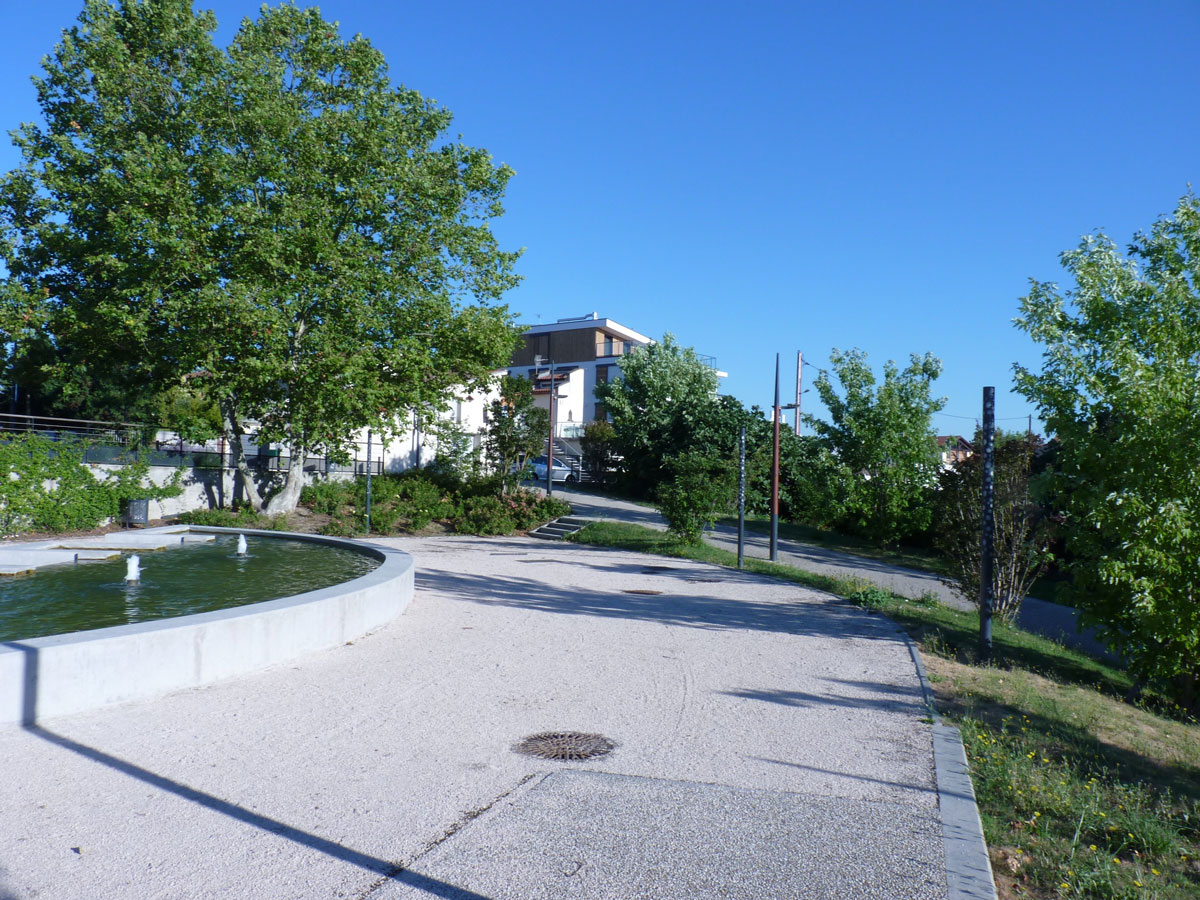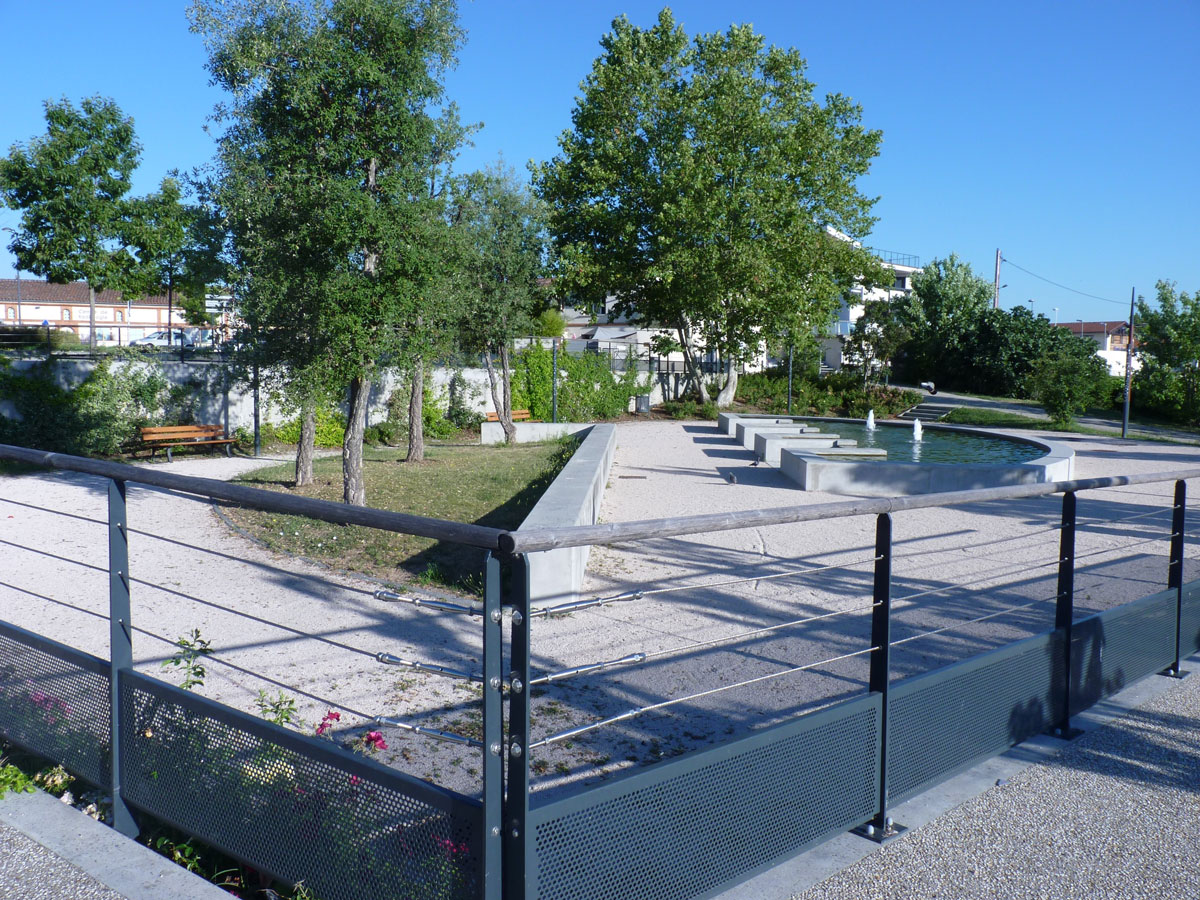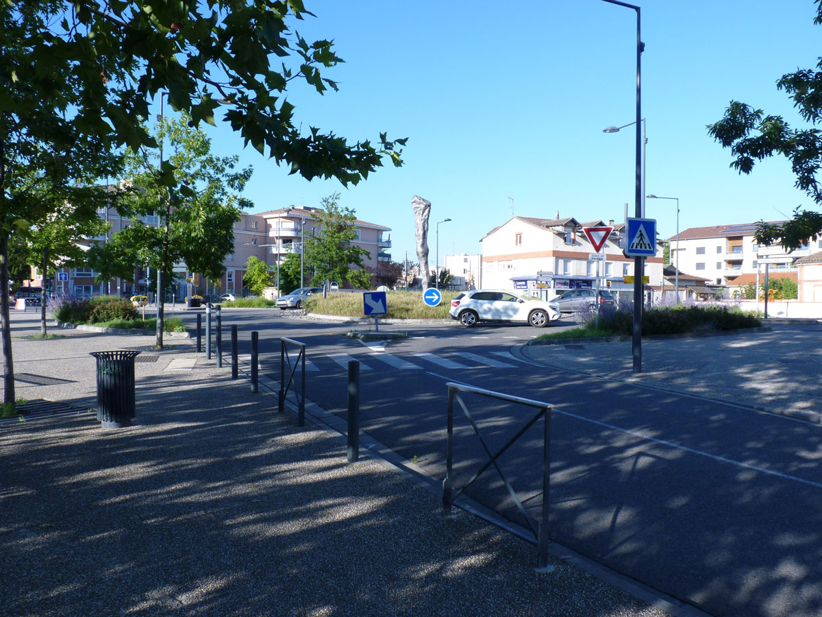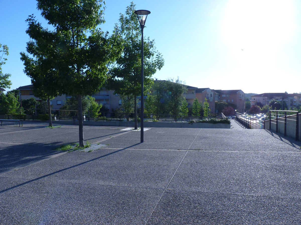 Mot-clef : Blagnac ; place publique ; CARREFOUR ; RAMPE D'ACCÈS ; MOBILIER URBAIN ; FONTAINE ; espace public