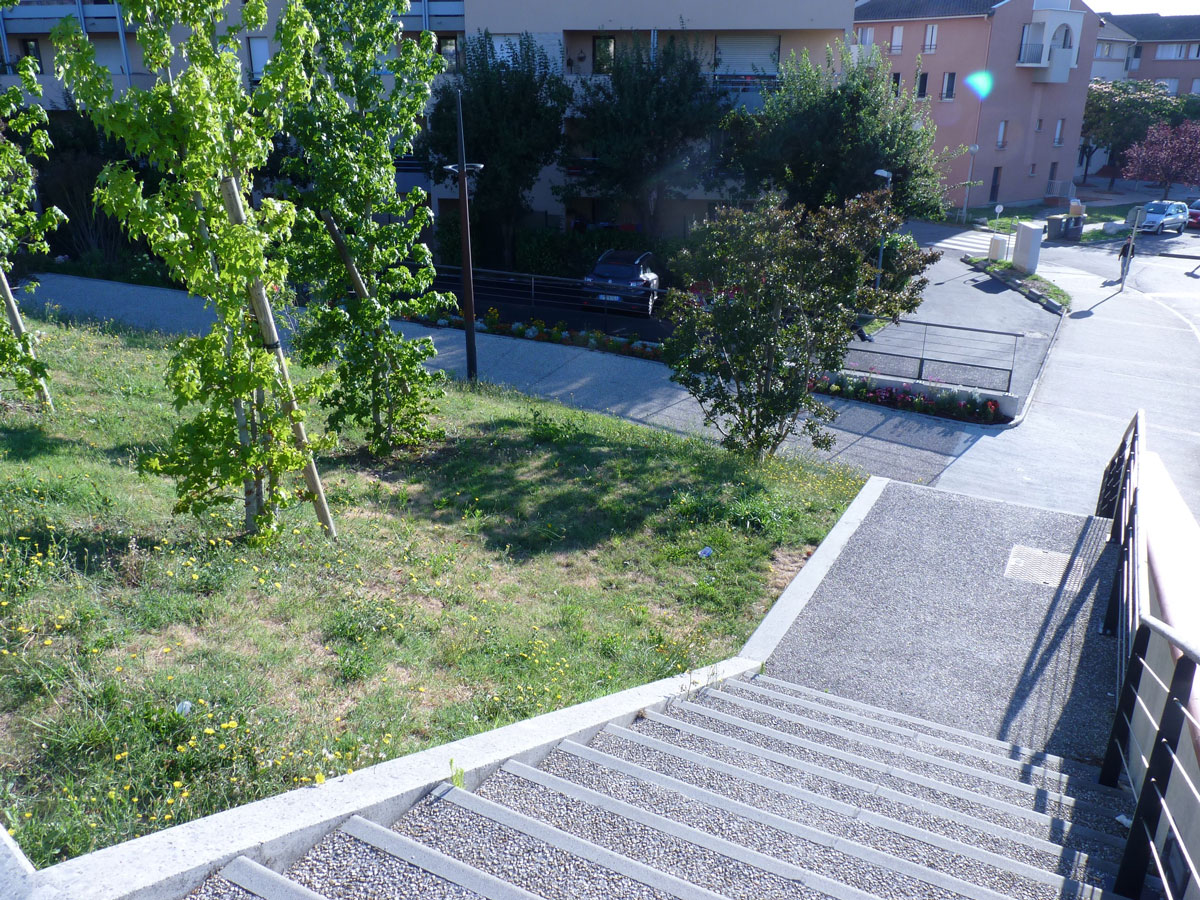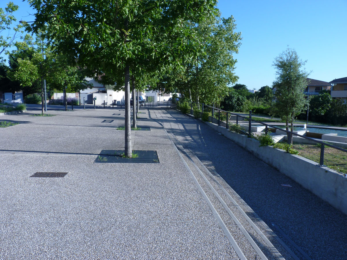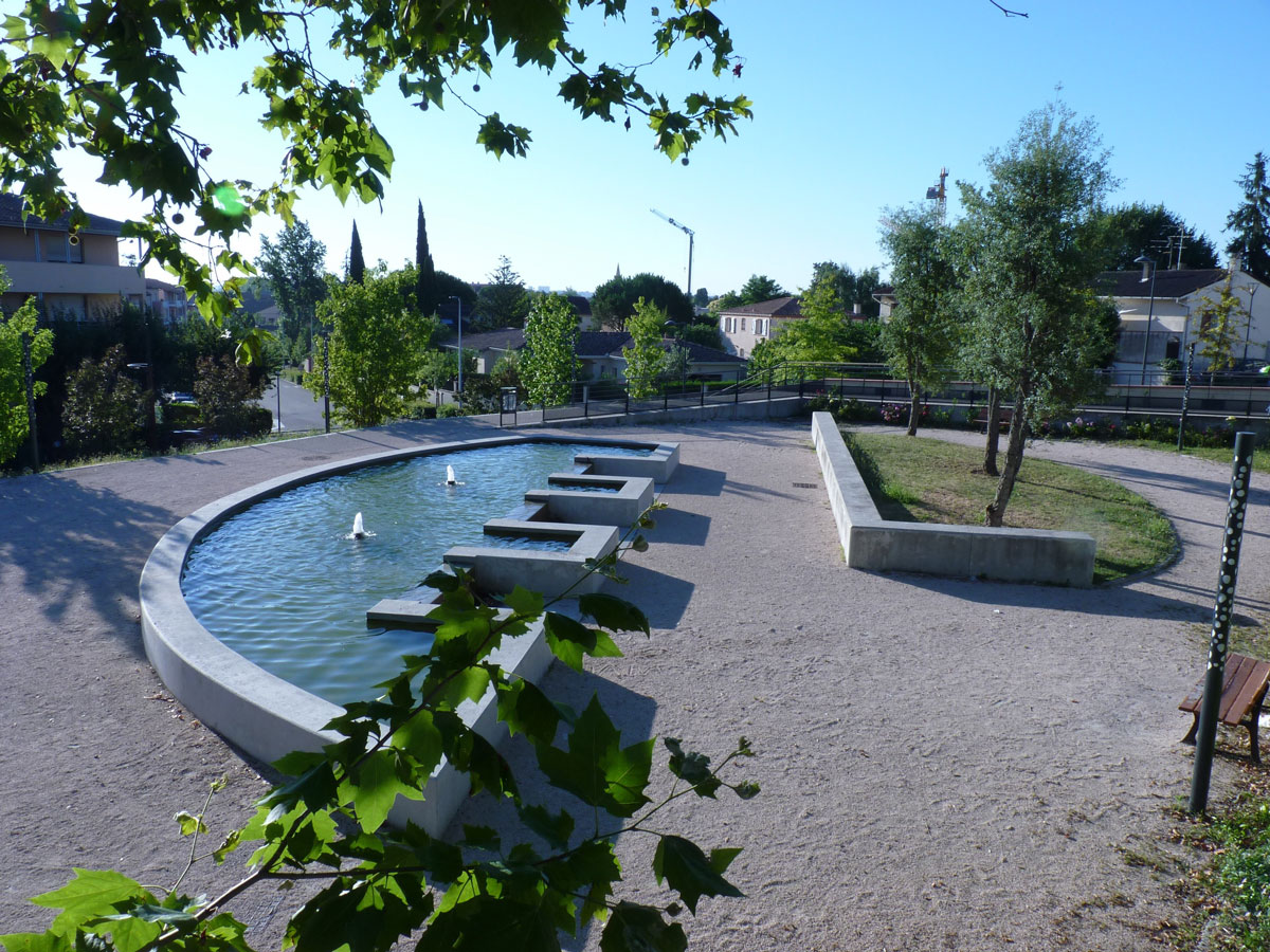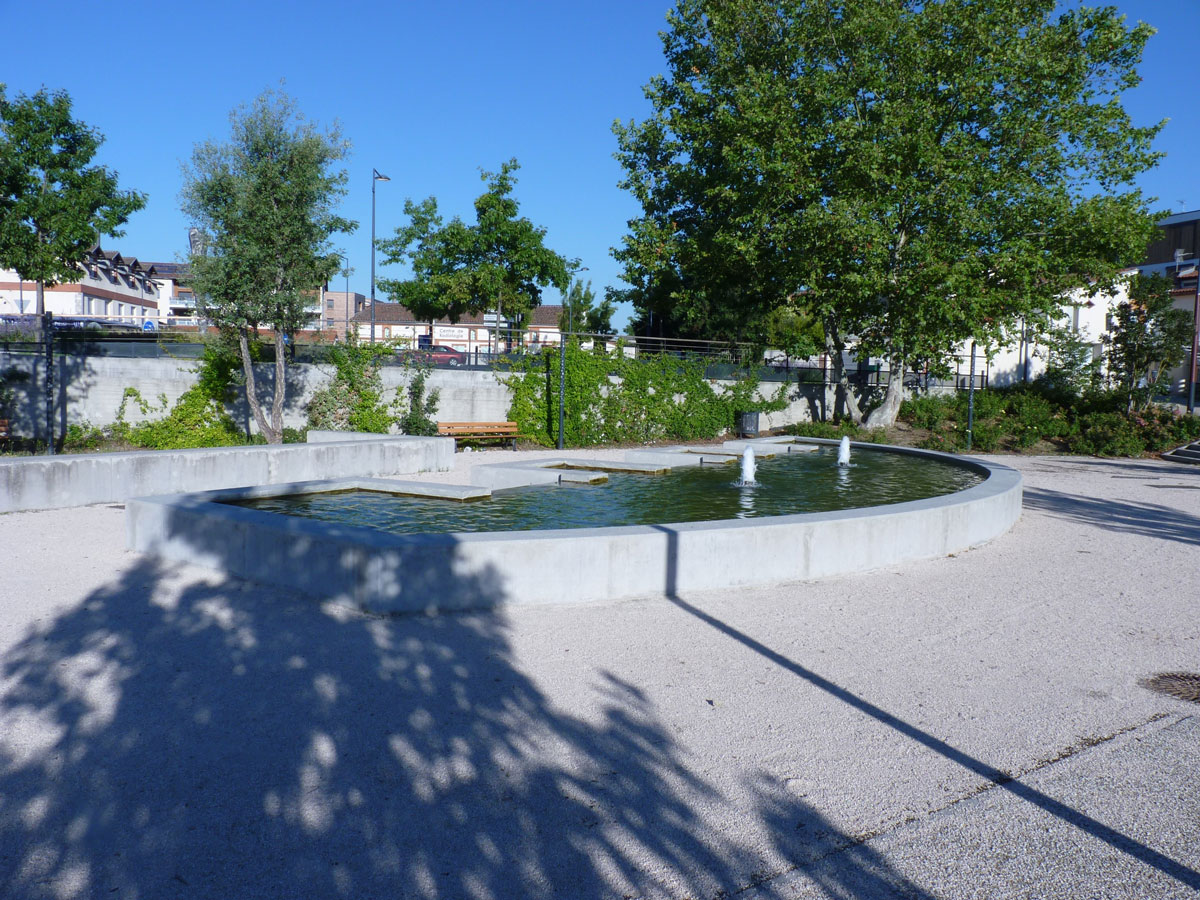Mot-clef : Blagnac ; place publique ; CARREFOUR ; RAMPE D'ACCÈS ; MOBILIER URBAIN ; FONTAINE ; espace public