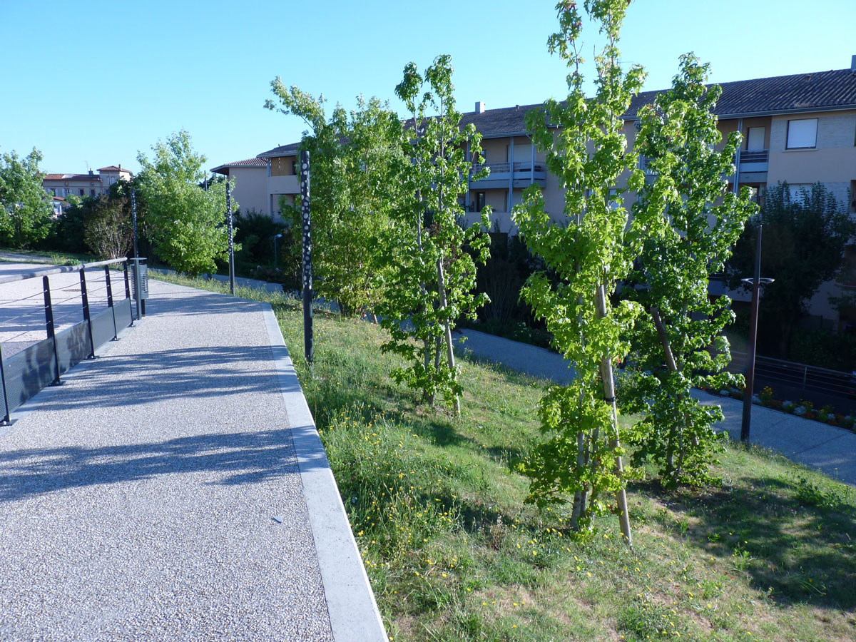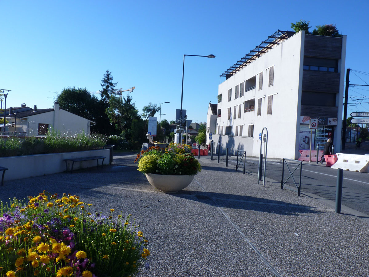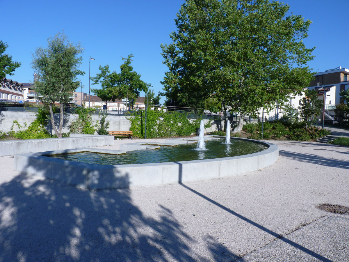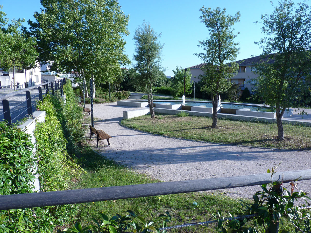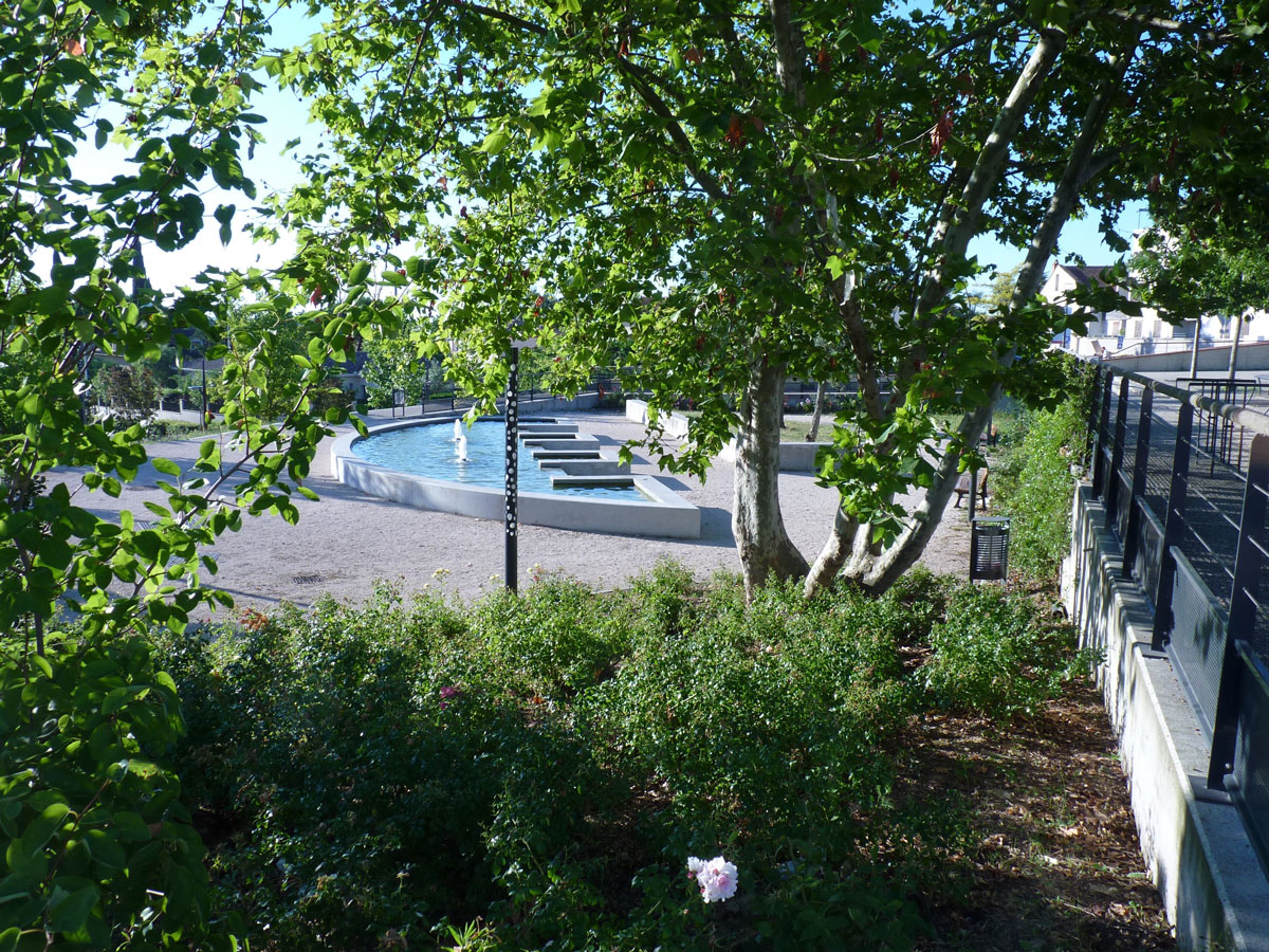 Mot-clef : Blagnac ; place publique ; CARREFOUR ; RAMPE D'ACCÈS ; MOBILIER URBAIN ; FONTAINE ; espace public