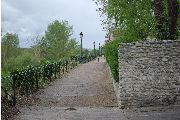 1 prise de vue de l'aménagement d'une berge à Palaminy. Le chemin est longé par un garde-corps et des lampadaires.