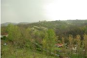 4 prises de vue de coteaux enfrichés au-dessus de Montesquieu. Boisement et prés sur collines. Vallées au pied des collines aménagées pour exploitation agricole : champs et pâturages. Des routes sillonent le paysage. Présence de plusieurs maisons individuelles de type néo-régional sur les images.