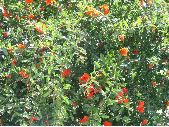 1 prise de vue en détail du feuillage et des fleurs d'un grenadier.