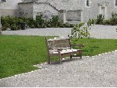 Angers ; banc ; BOIS ; JARDIN ; PELOUSE ; gravier ; Plante ornementale ; PLANTE HERBACÉE ; FACADE ; PIERRE ; ESCALIER