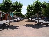 3 prises de vue de la place centrale de Quint-Fonsefrives, pays toulousain. Place et boulodrome avec sol en sable. En bordure de la place escalier menant à des voiries bitumées. Alignement d'arbres au pied de l'escalier. A un bout de la place, au pied des arbres présence de bancs métalliques et jeu pour enfant.