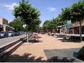 PAYS TOULOUSAIN ; Quint-Fonsegrives ; place publique ; BOULODROME ; sable ; ARBRE D'ALIGNEMENT ; ESCALIER ; VOIRIE ; BITUME ; banc ; MÉTAL ; jeu d'enfant