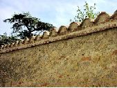 Mur de clôture en brique et moellons, couronnement en tuile à Lagarde.